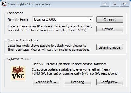 - Initiate a Vnc Session ((TightVnc viewer as example)